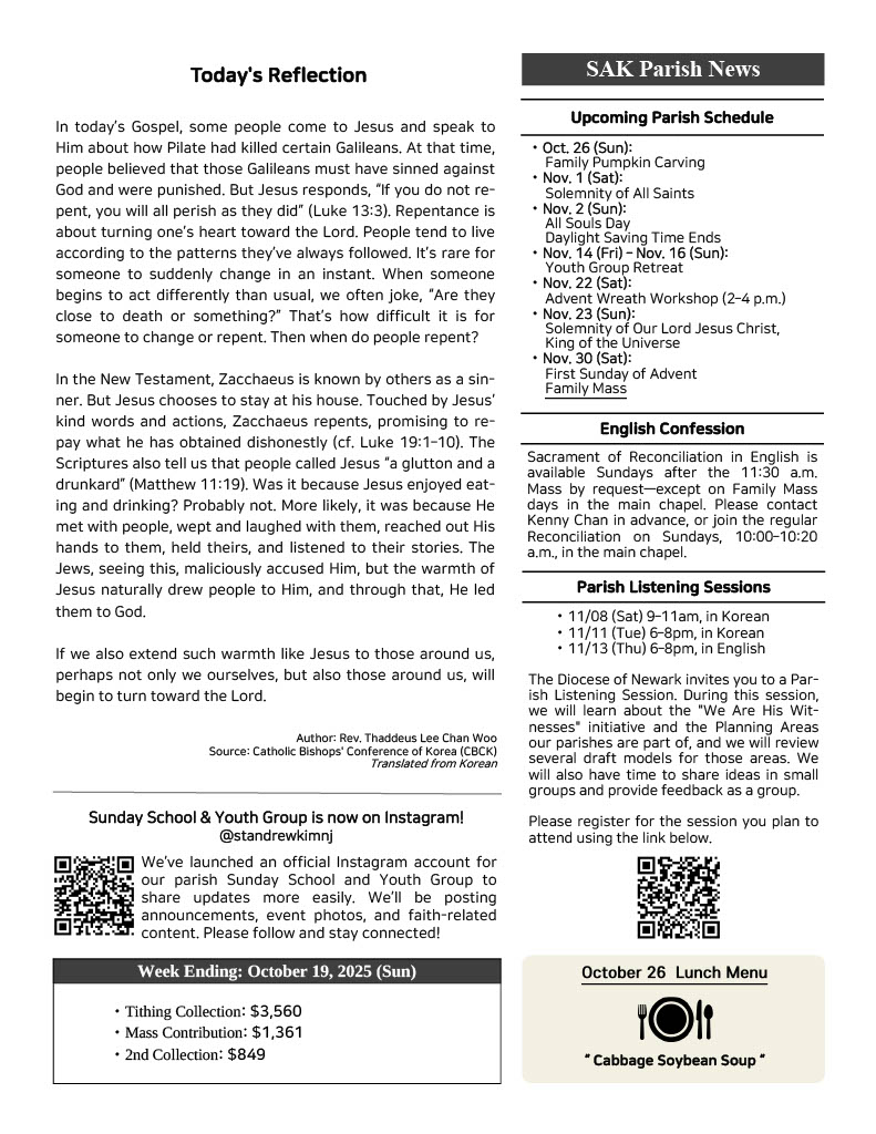 | Next | [2025] 10월 19일 주보 (한글) | ilovesak | 2025-10-17 |